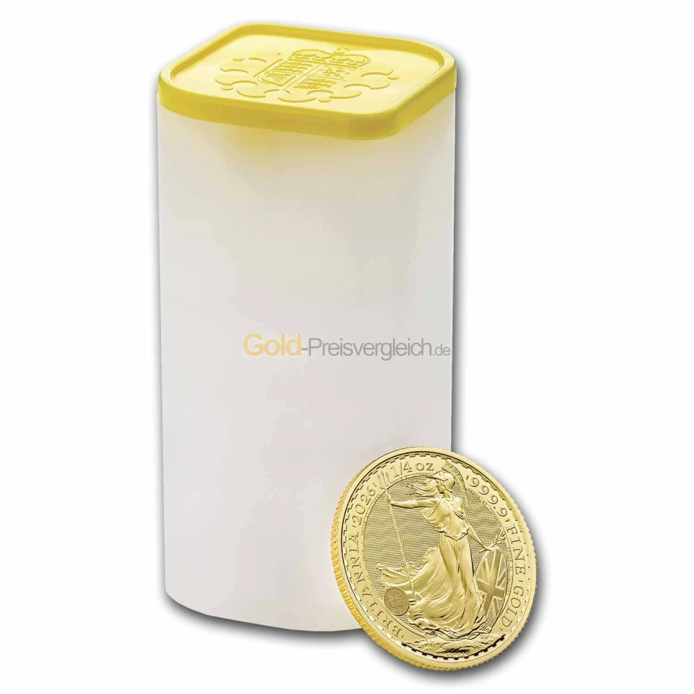 Die Anlagemünze Britannia stammt aus dem Hause der britischen Prägeanstalt Royal Mint. Im Jahre 1987 wurde die erste Auflage der Britannia in vier Stückelungen geprägt. Bis heute ist die Britannia in 1/10, ¼ , ½ und 1 Unze erhältlich. Der Nennwert der Münze reicht von 10 über 25 bis zu 50 und 100 Pfund. Der Feingehalt der Goldmünze beträgt seit 2013 99,99 % (24 Karat). Zuvor lag er bei 22 Karat und in den ersten zwei Jahre der Produktion bestand die Goldmünze aus einer Legierung mit Kupfer (1/12). Sie gilt als die erste Anlagemünze Europas und bietet bis heute eine attraktive Gelegenheit zur Anlage. Daneben bringen wechselnde Darstellungen der Gottheit Britannia Sammlern eine reiche Abwechslung.