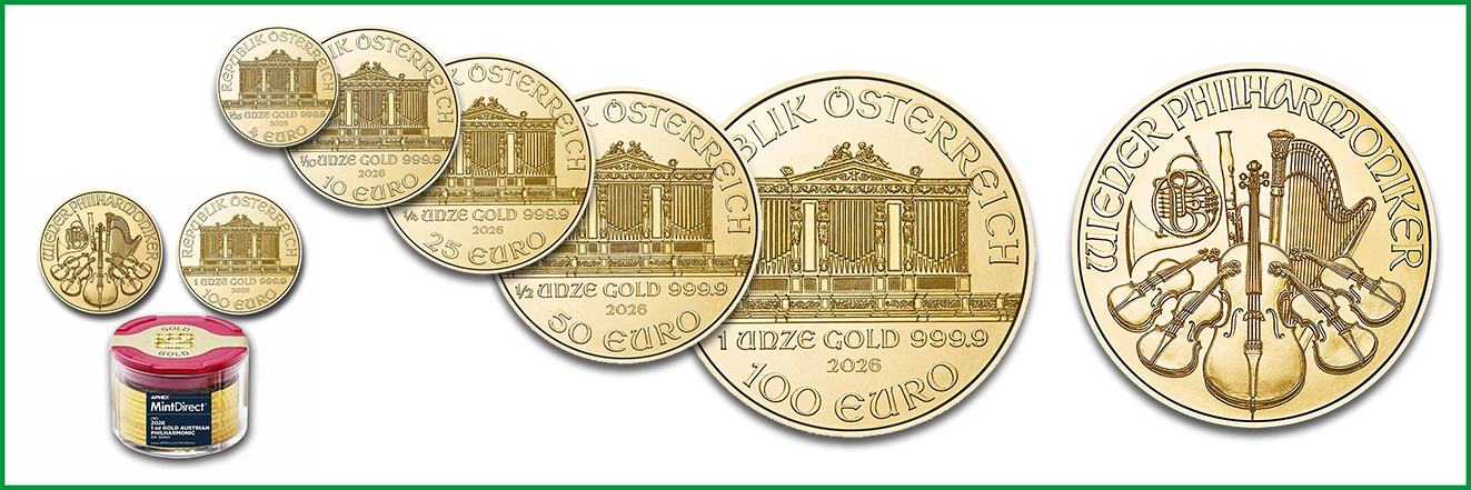 | Wiener Philharmoniker 2026 | Gold 1/25 oz | Gold 1/10 oz | Gold 1/4 oz | Gold 1/2 oz | Gold 1 oz |
